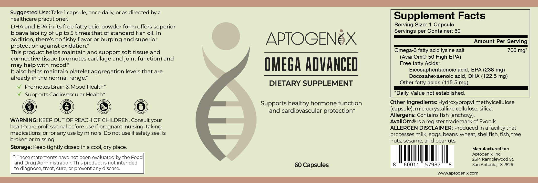 Omega-3 (from fish oil) | 700 mg* EPA free fatty acid powder (from AvailOmĀ®) | 238 mg DHA free fatty acid powder (from AvailOmĀ®) | 122.5 mg